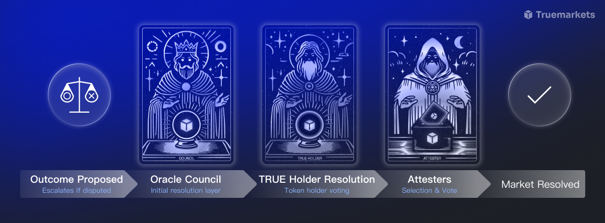 - TRUE holders vote on the market outcome.